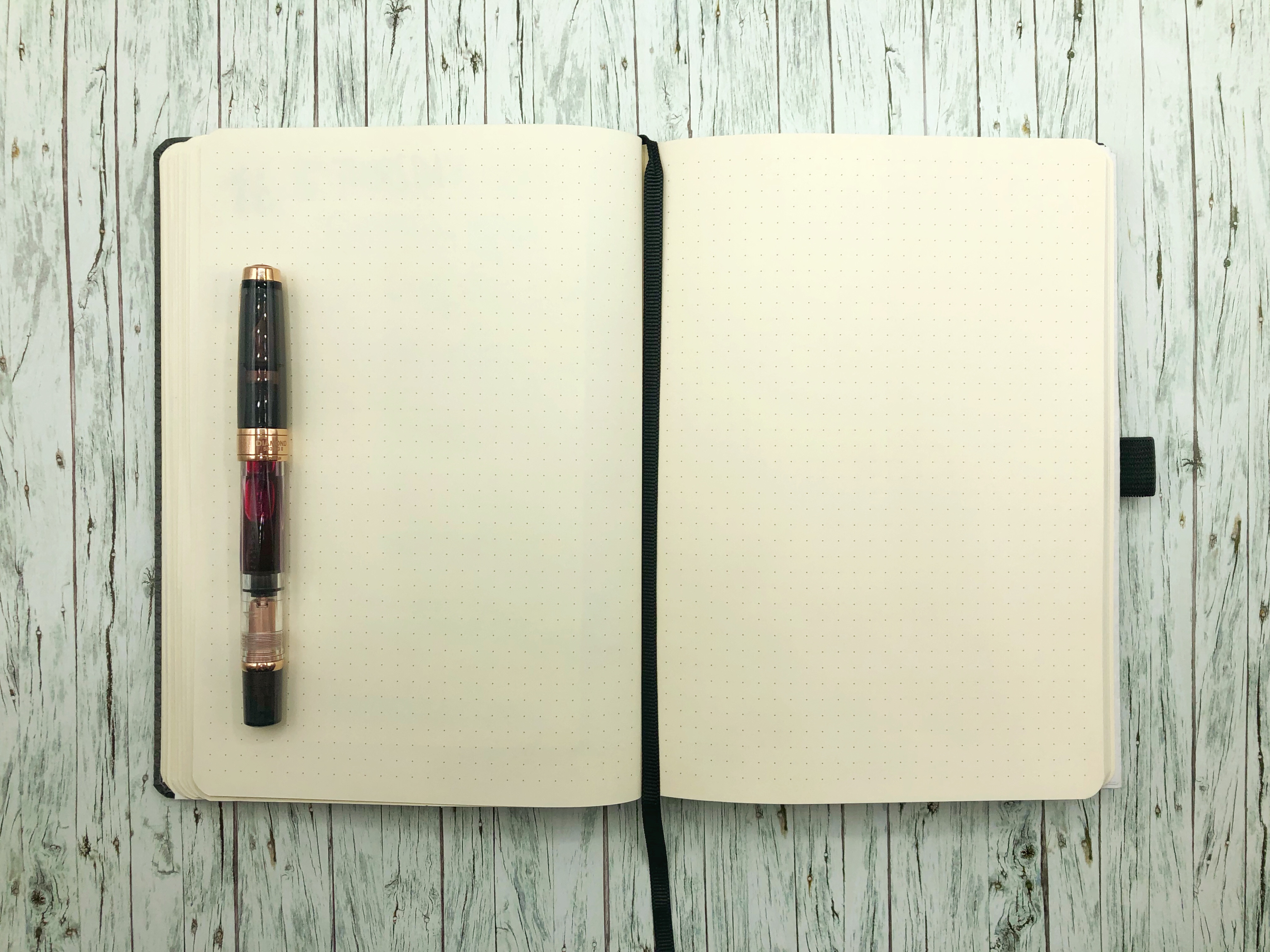 There isn’t any index and the pages aren’t numbered. There are 192 pages which are waiting to get filled with you thoughts. The paper isn’t a bright white, it is more a cream white and the weight per page is 100gsm. The surface of the paper is extremely smooth which feels amazing. In the back of the notebook is a pocket too. My Elephant Dingbats has a dot grid on the pages which are a little bit visible.