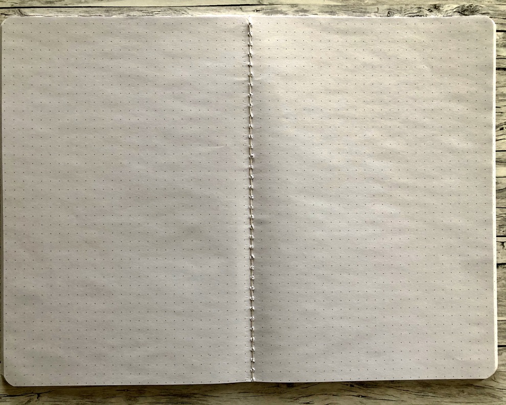 When you open the notebooks there isn’t any cover page for your name or an index either. You can start with journaling right away. The pages have dots on it and they are the standard ones (0,5 X 0,5 cm). The paper of the pages seems really thin. Unfortunately there isn’t any clue how thick the paper really is. I would guess it is something around 80gsm.
