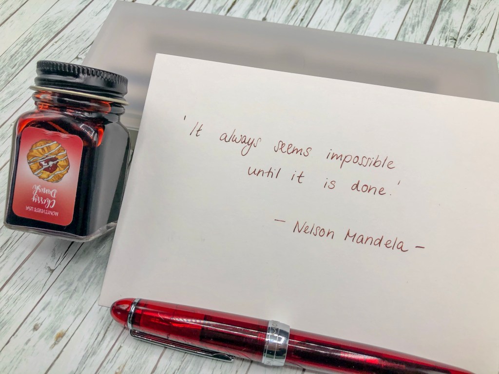 I tested both inks and the blue one is really lovely; it gives your writing a beautiful touch. The cherry one is a really pleasant one. It isn’t such a light or heavy red. It is beautiful too.