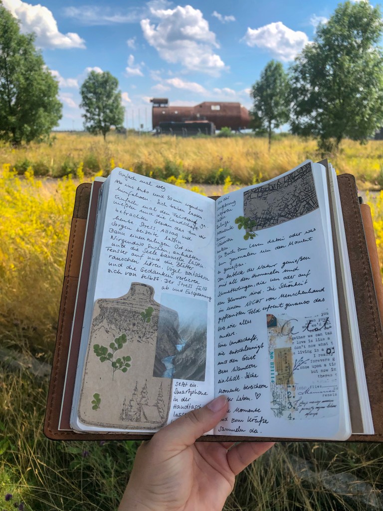 I was thinking whether I could write about my life but well, let’s get back to our main focus: journaling. 🙂 Some weeks ago I discovered the relaxation and beauty in journaling outside. I really enjoy being outside, getting a kiss by the sun and a some refreshing wind blowing around my hair. I listen to the twittering of the birds and find new inspiration for some spreads.