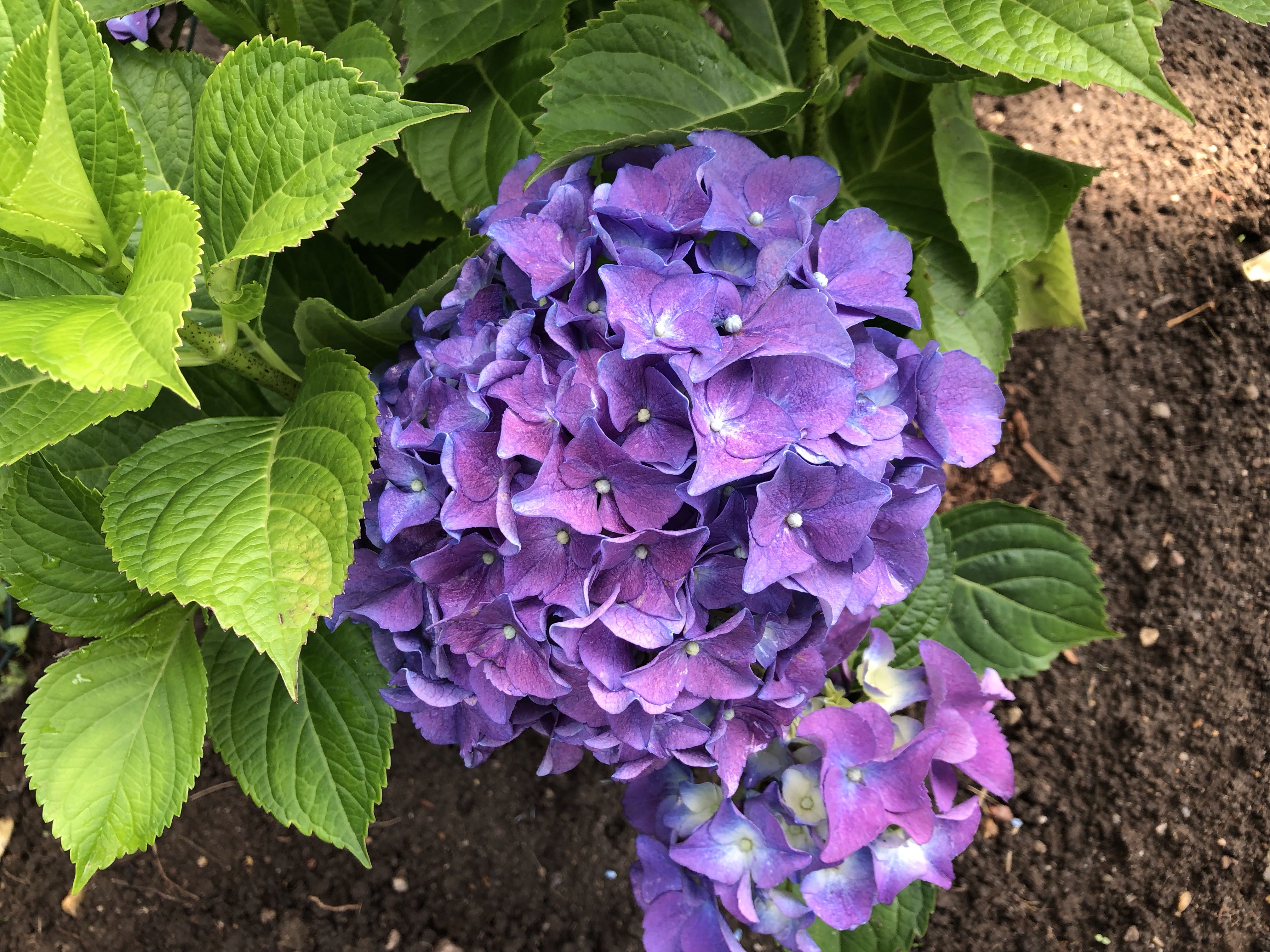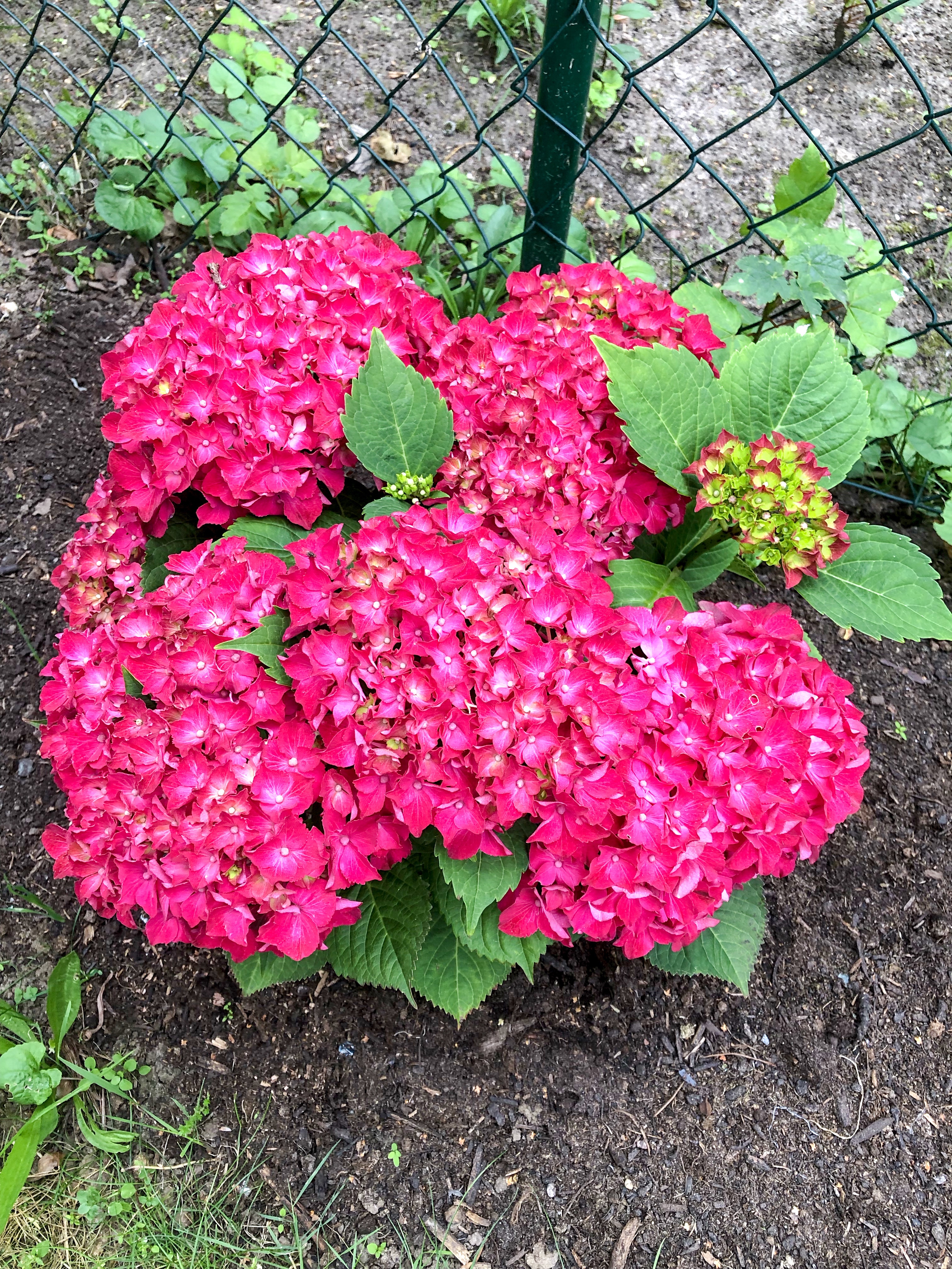 The back garden… well, I love hydrangeas. They are beautiful flowers and the blossoms are so amazing. At the moment, there are 10 of them in a row. They are all growing and the colours are fantastic.
