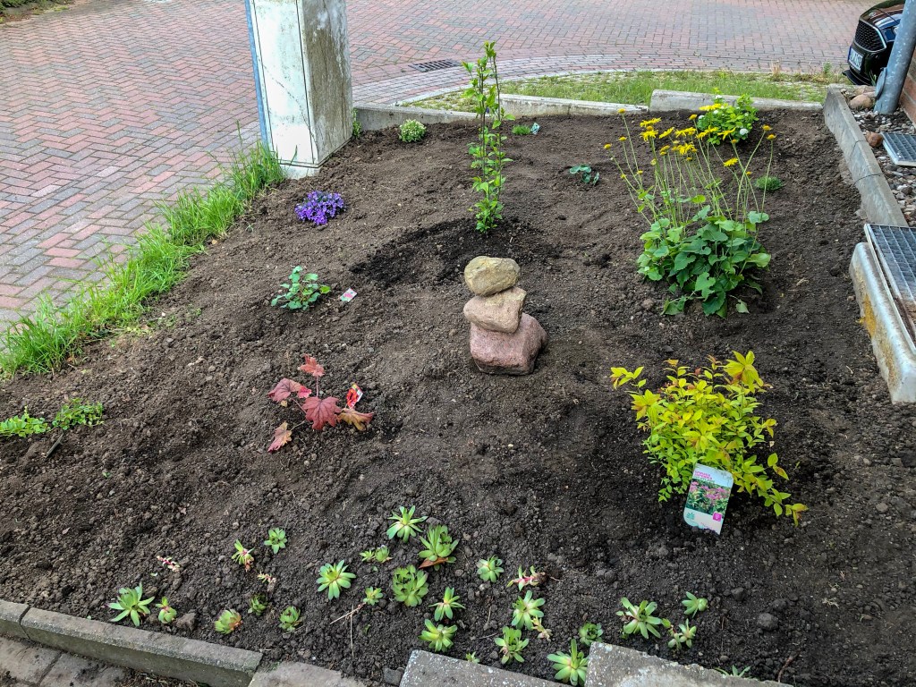 I also have a second flower patch with a lot of different flowers like snapdragons, coneflowers, carnations and more groundcovers. Even some houseleeks have found their place in there. 🙂