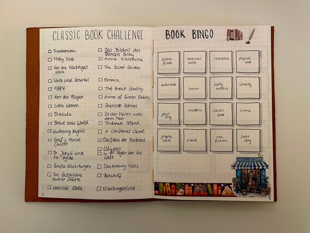 In November 2023 I had this idea in my mind to read more books and find a way to journal about them. So I thought it would be great to look for inspiration on Youtube. Well, and what should I say? You find lots of videos there about this topic. After I had started watching my first video I was wondering how people manage to read 100 books or more in one year. It is such a huge number and I was really curious about it. I really felt a little bit bad because I haven’t got that much time to read everyday because other things need time as well and after a day’s work, I fall asleep quite quickly even when I want to read something. I thought that I need to overthink my priorities and maybe I would find more time to read. Well, let us stick with the woman on Youtube whose video I had been watchting.