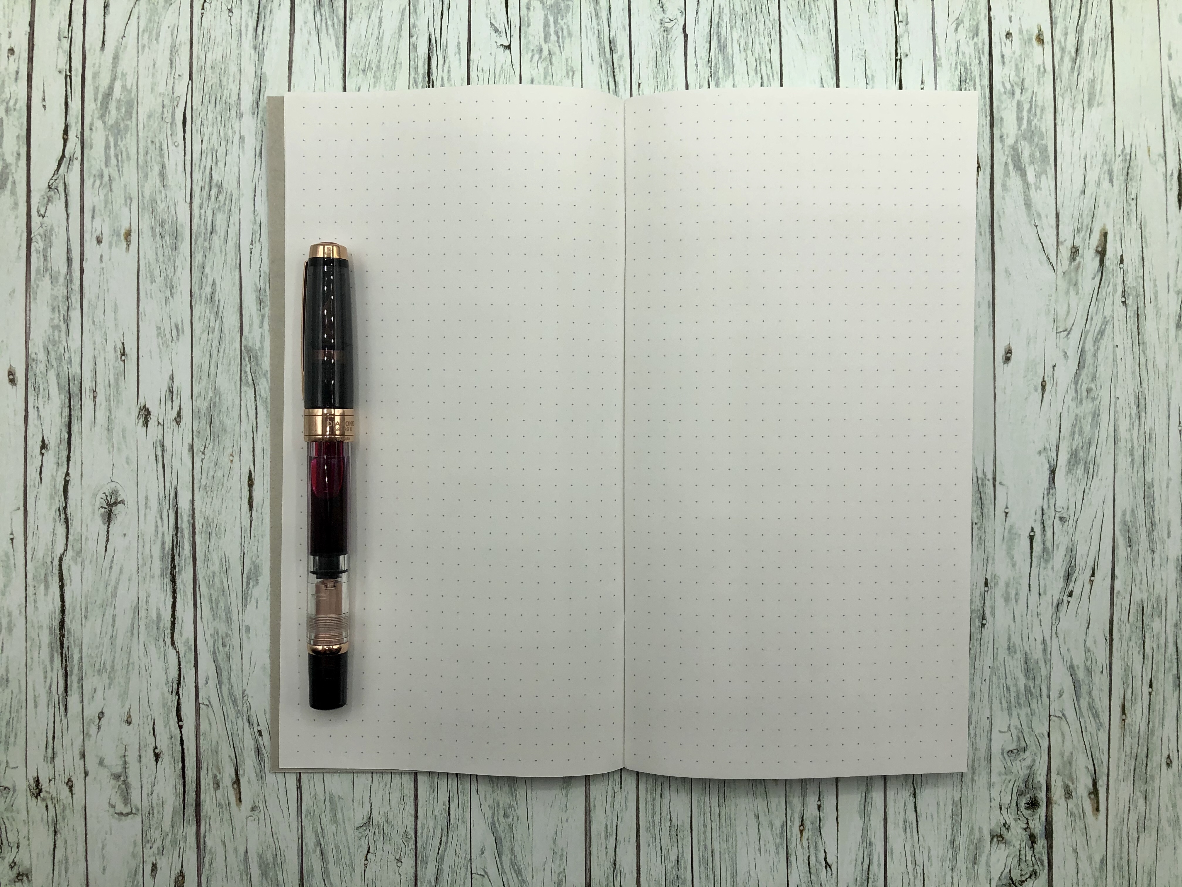 When you open the notebooks there isn’t any cover page for your name or an index either. You can start with journaling right away. The pages have dots on it and they are the standard ones (0,5 X 0,5 cm). The paper of the pages seems really thin. Unfortunately there isn’t any clue how thick the paper really is. I would guess it is something around 80gsm.