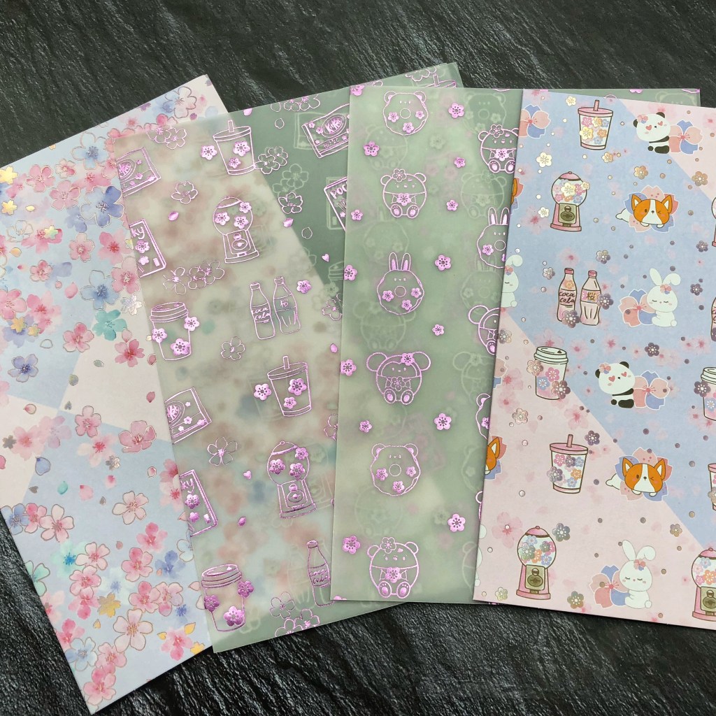 Everything is packed in little clear bags and has its own labels. Even some freebies are included as well and I got a little personel note too. 🙂 The envelope is beautifully decorated. The products look exactly like in the pictures on Etsy which is really important for me. I love these cute little sheets and the washi tape is adorable.