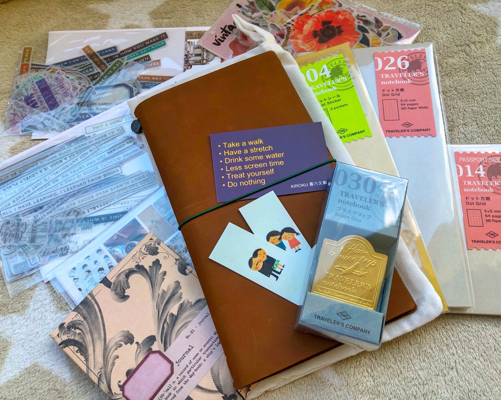 My journal for this year is finally ready. It took me quite a while to get it completed. Normally, I have a Leuchtturm1917 in A5 seize but this year I decided to take a Travelers Notebook. We will see how it works for me. I will give you an update. 🙂